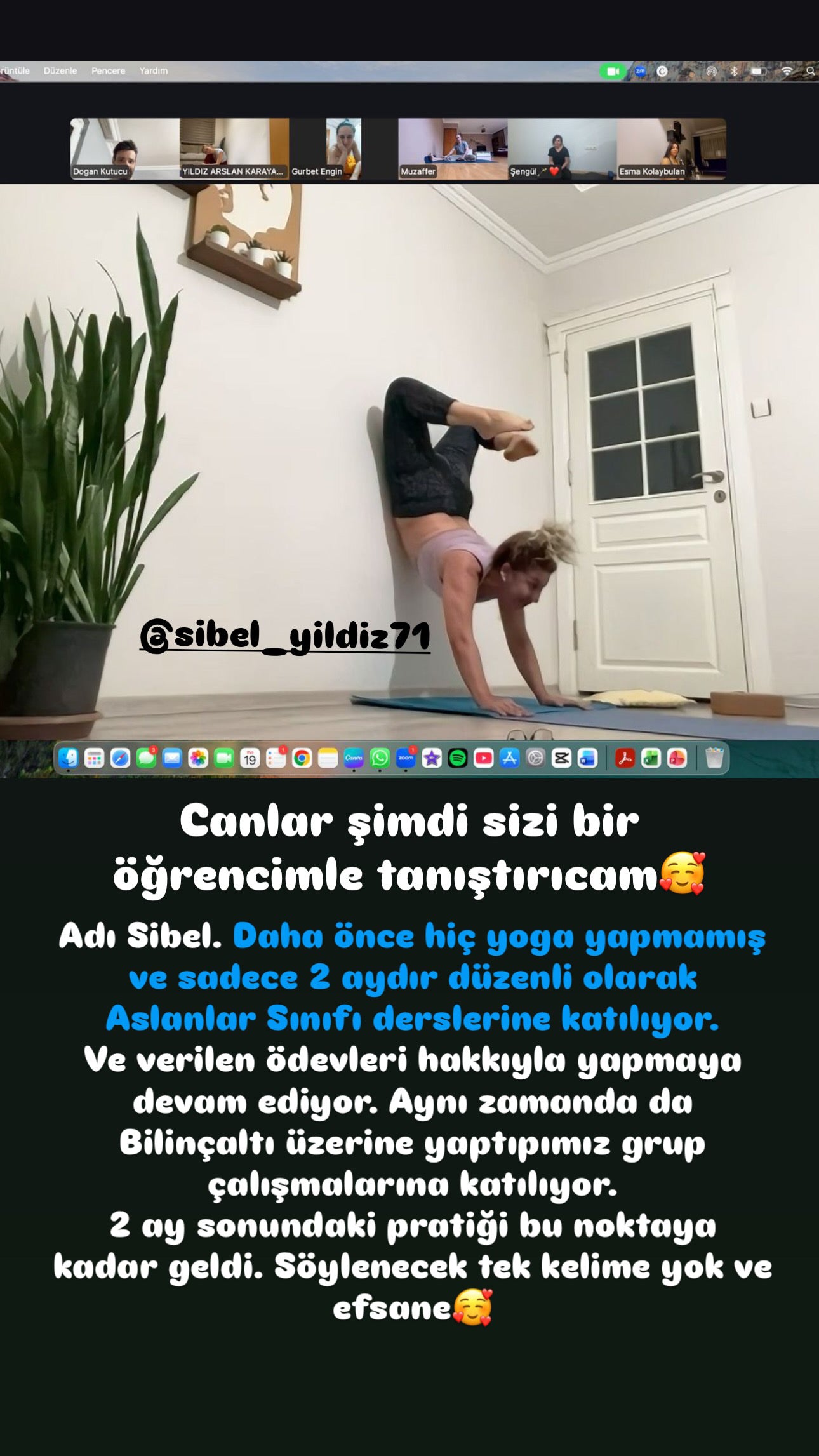 Hiç yoga yapmamıştı. Ama Aslanlar Online Yoga Sınıfı'na katıldı, derslere düzenli katıldı ve verilen ödevleri uyguladı. Şimdi orta seviyede bir pratiğe sahip!
