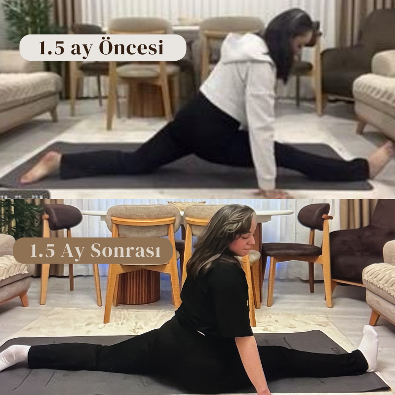 Başlarda bazı pozlarda zorlanıyor, hatta korkuyordu. Ama derslere düzenli katılımı, özenli pratiği ve kararlılığı sayesinde hem fiziksel hem zihinsel sınırlarını genişletti.
